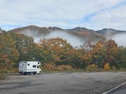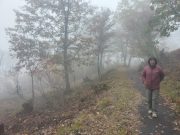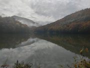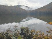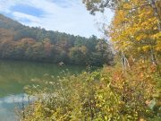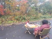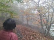 、昨日の森林整備を少しする予定(本日は、完全休養で、妻が大好きな紅葉を見に行きたいと前日計画)で早く起きたが、部屋の模様替えと自分の机の整理を始めたら、集中し過ぎて、あっという間に時間が過ぎた。そして、紅葉を見ながらの朝食のホットサンドなどの準備をして、8時半出発。曇り時々雨の予報の中、標高1200㍍位まで車で登ると、靄のなか、見事な紅葉が浮かび上がる。ひとまず、ホットサンドと珈琲の朝食を紅葉に包まれた世界で楽しむ。その後、池の周りを5キロほど周遊したが、これまた美しい紅葉の世界。戻ってくる頃には、この世のものとは思えない、美しい紅葉の世界が広がった。ほとんど人に会う事のない(熊よけのベルが道中置かれていたが)静かな遊歩道であった。午後は、この景色を堪能しながら読書。