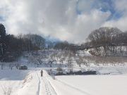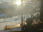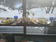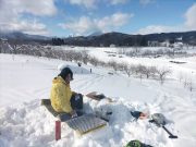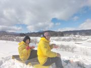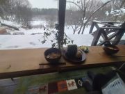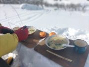 ゆっくり本を読み、昼食は北信五岳の見える丘まで、スノーシューで出かけ、そこで食べることに決定。ラーメン バーナーなどを用意して、誰も居ない静寂な田んぼ畑雑木林を通り、美しい山々を見ながら昼食。有名観光地や名所などに行かなくても、大地の周囲は魅力がいっぱい。しかも、静かで真の美しさとその暮らしがある。外食をしなくても、自宅にある食物を気軽にそろえて、この絶景をおかずに食べる食事は絶品。食事込み無料で気軽に味わえるツアー!?である。午後2時頃戻り、志賀高原の山並みを見ながらお風呂に浸かり、そのまま 本を読みながら、夕食を作り