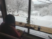 金曜日の朝、予想以上の雪のため、4時半除雪開始。7時過ぎに終えて戻り、美しいののはな文庫からの雪景色(あえて ベランダの雪はそのまま)を見ながら、始業前のひとときを、ゆっくりコーヒーとトーストでくつろぐ。朝日、つらら 樹木が美しい。9時前には、目の前のたき火コーナーに登園した子ども達が次々に集まってくる。この日は、松岡享子さんのDVDがここで上映された。そんな文庫で、本日より日曜日までの週末を過ごす。夜は、ゆっくり薪ストーブ前で読書。