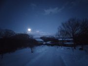 午後2時戻ってきて、お風呂の入り読書。夕方 犬の散歩。白夜のように、美しい満月の世界が広がる。