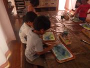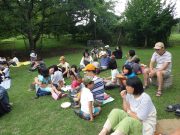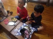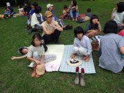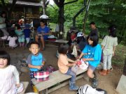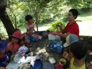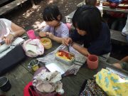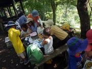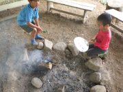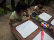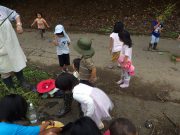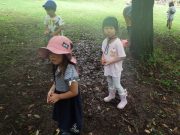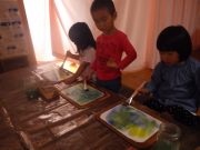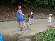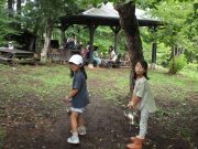 週明け、恒例のにじみえを楽しみ、外は雨模様であったが、お弁当を久しぶりに室内で食べた後は、外で遊ぶ。