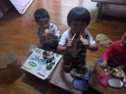 土曜日恒例のお話会。童歌おはなしを楽しんだあと、おやつタイム。その後、散歩。充実した土曜日。