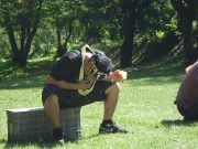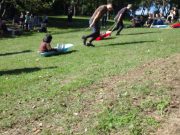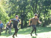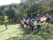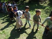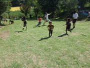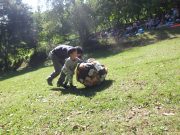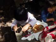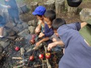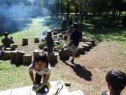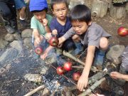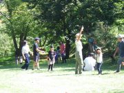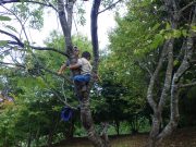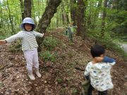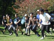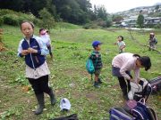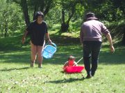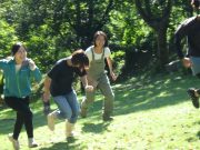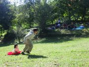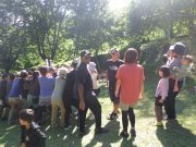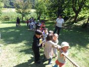 大人のリレー競技で、リンゴ丸かじり 木登り わらべうた、夫婦競技 傾斜地での綱引き ネイチャコレクションビンゴ などで、全員汗だく 身体を張った競技で、大人も真剣そのもの。もちろん、カメラやビデオもない。そんな身体をはった全力の運動会。