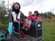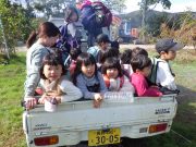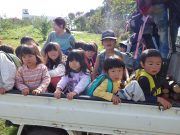 昨日に引き続き、森林伐採作業をみっちり皆で行い、全て終了した。広大な畑の中を、ご褒美で、軽トラの荷台に載せてあげた。(広大な畑の中なので、一般道路公道ではないので、あしからず)
