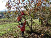 今年は 柿が豊作。干し柿にする柿とりに出かける。甘柿と渋柿が混在している畑なので、甘柿をかじりながら、柿とりを楽しんだ。