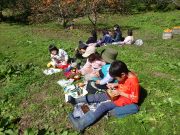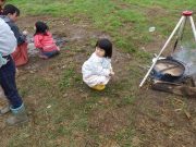 綺麗になった森林伐採の畑へ出かけ、焚き火を起こしたりして、終日楽しんだ。焚き火で、間引きした大根の汁を作り、秋を味わった。