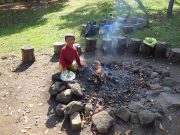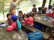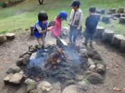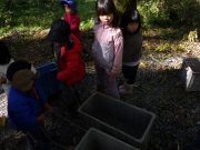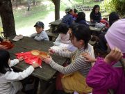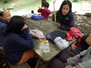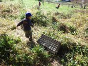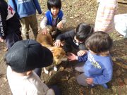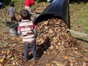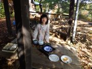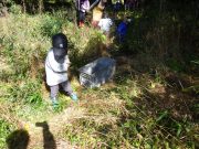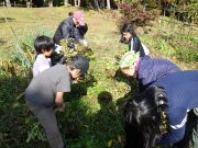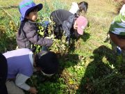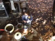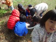 大根の間引き作業。間引いたものは、焚き火で味噌汁にして食べる。