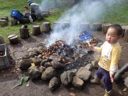 連休明け。ほとんど毎日毎朝から焚き火の煙があがる。落ち葉焚き 林檎 芋 などを、連日焚き上げている。大地は 燃やすものには事欠かない。