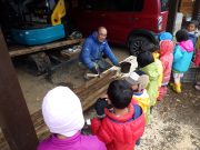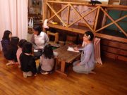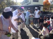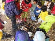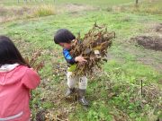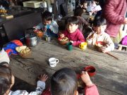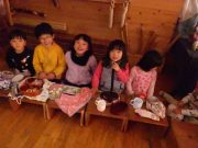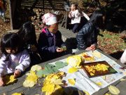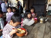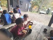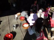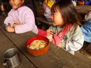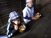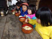恒例のそば給食。子どもたちが育てたサツマイモとカボチャの厚切りを、早朝から 竈でたっぷりと揚げた。そして、子どもたちの登園に合わせ、三キロ超の蕎麦を手打ちした。今回は、暖かい天ぷら蕎麦。相変わらずの絶品!! こんな大盛りの美味しい蕎麦は、まさに大地だけである。!!