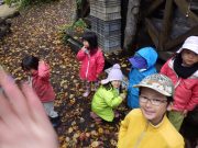 紅葉真っ盛りの中、ゆっくりと落ち葉