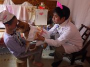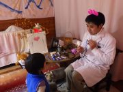 第二診療室では、正規の医者が(大地OBだけに)面白おかしく診療。待つ子どもたち置かれているぬいぐるみをそれぞれ抱っこして可愛く待っている。傍には、赤ちゃんのおんぶしている看護師。