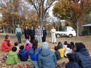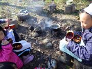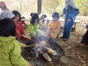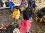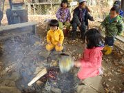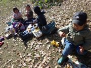 すっかり雪が溶けてしまい、元通りの落ち葉ふかふかの秋の大地に戻ってしまった。落ち葉を集めての3度目の焼き芋を楽しんだ。