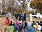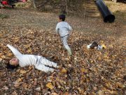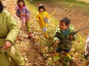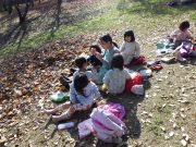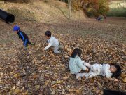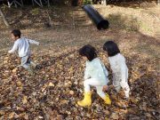 スロープ一面まで落ち葉が敷かれた。そのふかふかの落ち葉で転げまわっている子供たち。