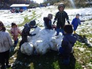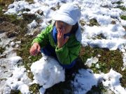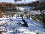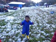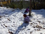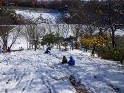 冷え込んだ朝、初雪。10センチほどつもり、子供たちは大喜び。雪だるま そり遊び お尻滑りと、冬の幸先良い遊びで盛り上がった。
