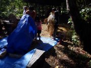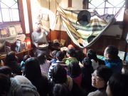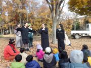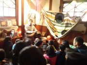 土曜日のお話会と文庫キャンペーン。大地の母親のお話グループ おはなし籠 のメンバーによるお話会が行われた。