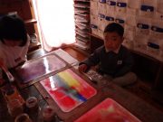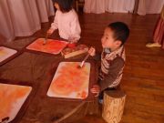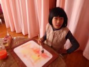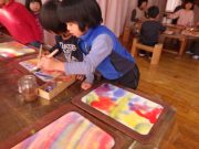 秋休みの後の週明け。久しぶりのにじみ絵。午後は、明日から大雪ということで冷え込んできている。子供たちは、期待大である。