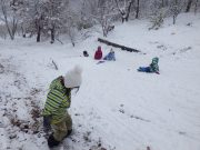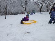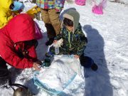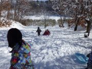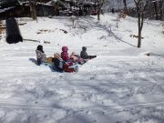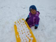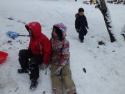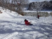 冷え込んでいるので、昨日雪も解けずに、今年は、運がよく、昨日に引き続き、雪遊びを楽しむことができた。