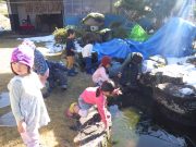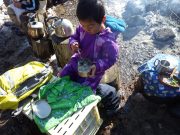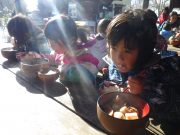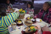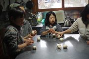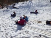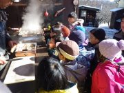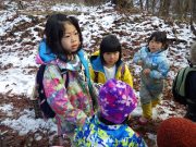 最近だいちでのはやりのスコップそり。普通のそりに飽き足らず、雪かき用の自分のそりを器用に操り、スロープを下っていく。たっぷり遊んだ後は、待望のおでん給食。新築されたルアンパバーンの赤提灯のおでんやさんで、おでんを注文して、この秋収穫した無農薬コシヒカリの新米と共に、青空の下で昼食を愉しんだ。