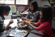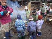 小学部の子どもたちは、アドベントの夕べ。朝からパンを焼き、スープを仕込み、石窯でパンやチキンを焼いて、素敵なディナーを味わう。その横にあるアドベントの庭で、リンゴのろうそくを灯して、アドベントの光の輪を灯し、その光を見つめながら、ノンタン母さんのお話、「七羽のカラス」を愉しんだ。