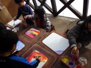2学期最終週。恵みに雪が降り、いつものようににじみ絵を愉しんだ後は、雪の世界に出て、ベランダの雪かきをしたりして、久しぶりの冬を愉しんだ。