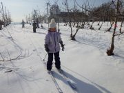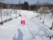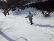 好天に恵まれて、待ちに待ったクロカンにでかける。アルペンとは違い、自由に気軽に雪の中を散歩でき、自然と一体になって雪の世界を満喫できる魅力がある。愉しみ方も、主体的であり、いつも子どもたちの歓声が伴う。この楽しさ 面白さを、親子 家庭で気軽に冬の遊びとして愉しんでもらうことが、大地の願いである。
