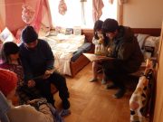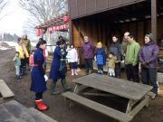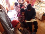 そして、3つの年齢に合わせたおはなし会。それぞれの会場まで、ソリで滑って行く。そして、雪の中でのおはなし会を愉しむ。