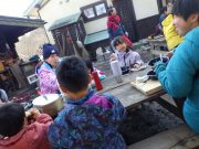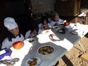 全て 子どもたちの手作り 竈 石窯料理の準備風景。