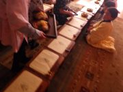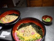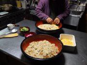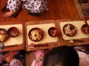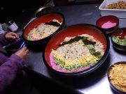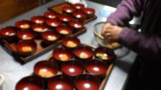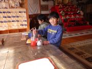 恒例のひな祭り会の給食。日曜日から、ゴボウの先がけなどして、竈でちらし寿司の元をしっかり準備してきて、早朝に竈でご飯を炊き、お内裏様とおひな様のちらし寿司を完成させた。お吸い物、甘酒(もちろん、大地無農薬コシヒカリの麹) そして、サツマイモのケーキを準備した。