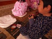 その後、おひな様の音楽に合わせて、うれしいひな祭りを歌い、子ども達の成長を祝った。